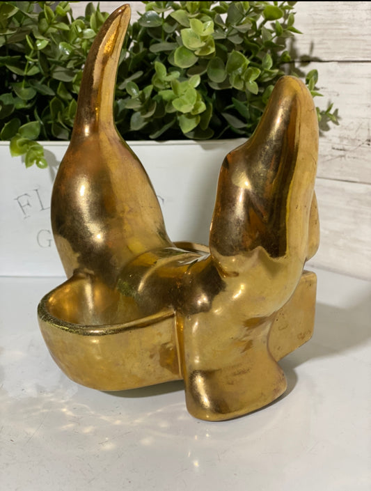 Vintage Ceramic 1950 AL Hirsch IG Ely 22K Gold Plated Dachshund