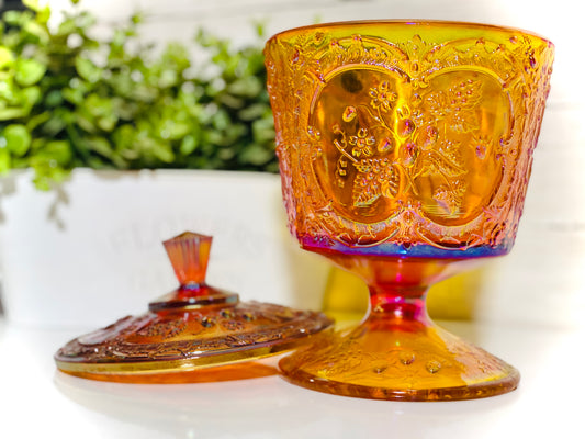Carnival Glass: This type of glass made by a number of different companies is characterized by its "oil slick" coloring in varied hues.