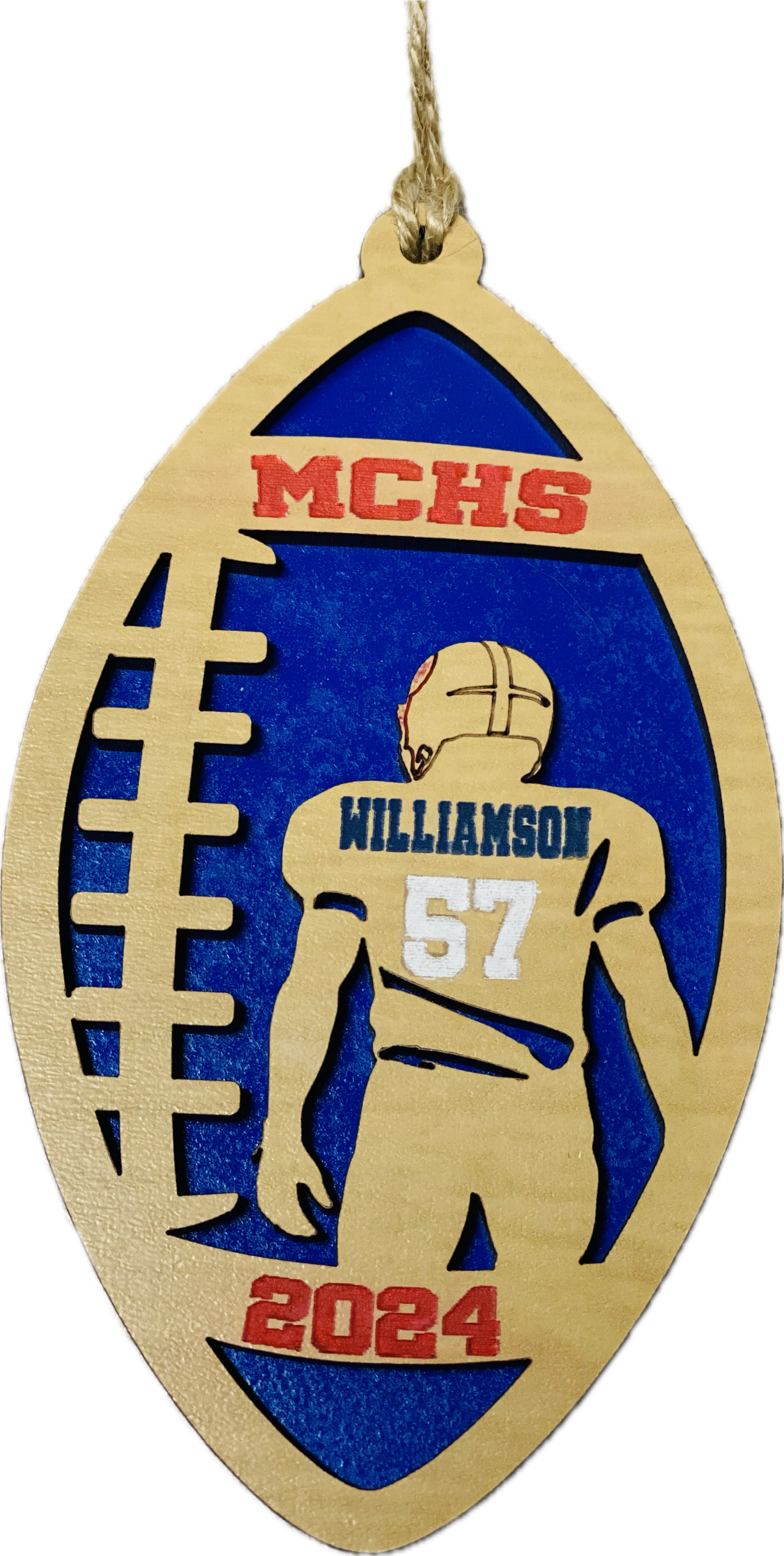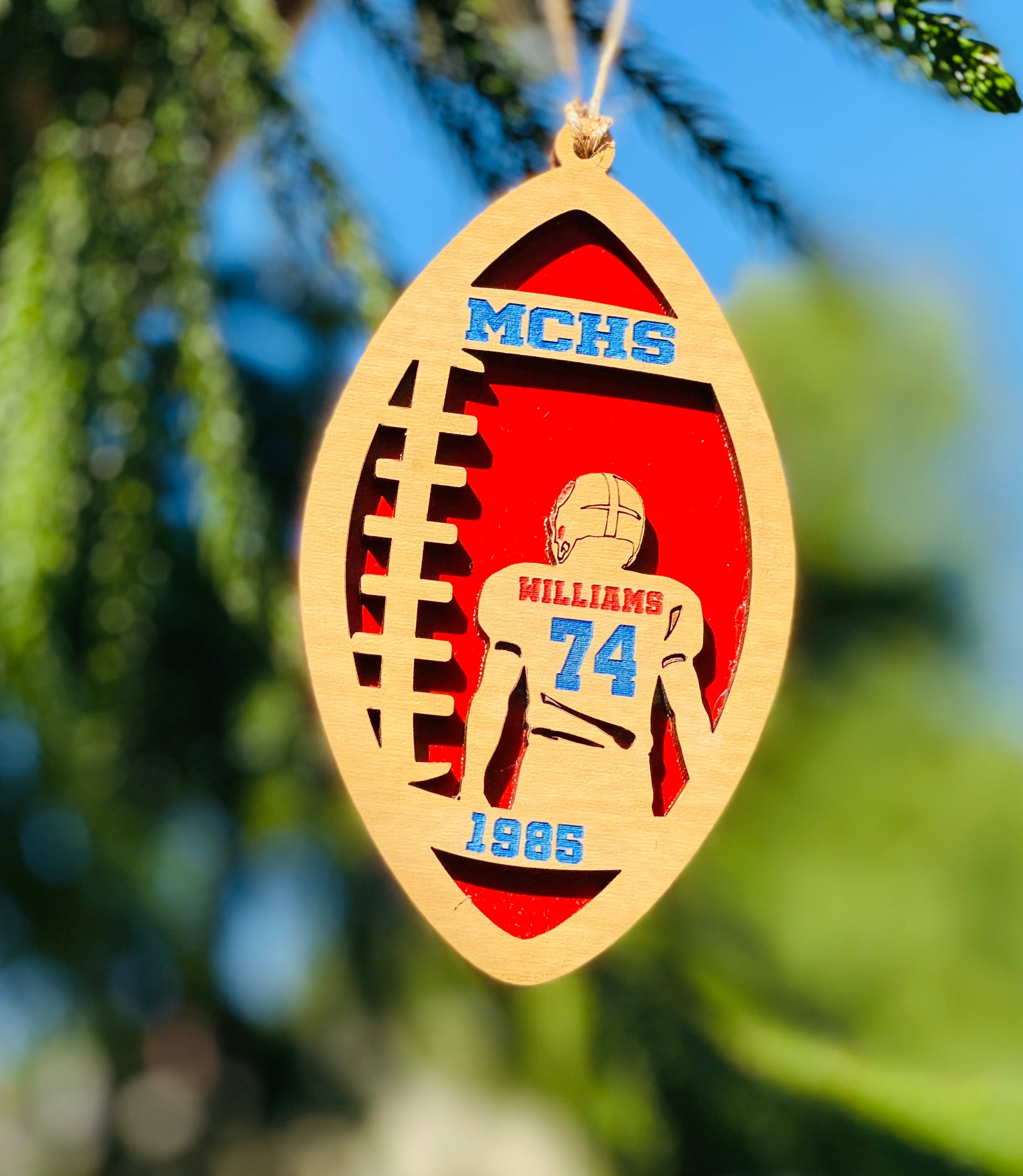 Celebrate your favorite football player with this custom-made, football-shaped ornament!
